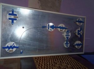 Questa lavagna ha una doppia funzionalità, non solo permette di fissare i macrocomponenti ed assemblare i circuiti in verticale, ma funge anche da piano di massa; il macrocomponente massa fa scorrere il segnale direttamente sulla lavagna che lo rimanda in tutti i punti del circuito dove è richiamato.
